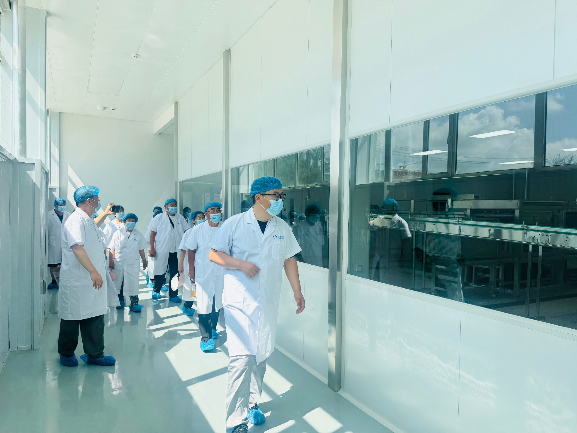 在科技見證環(huán)節(jié),考察團實地參觀了肽好生物的10萬級GMP標準透明工廠,重點觀摩了小分子活性肽提取生產(chǎn)線。